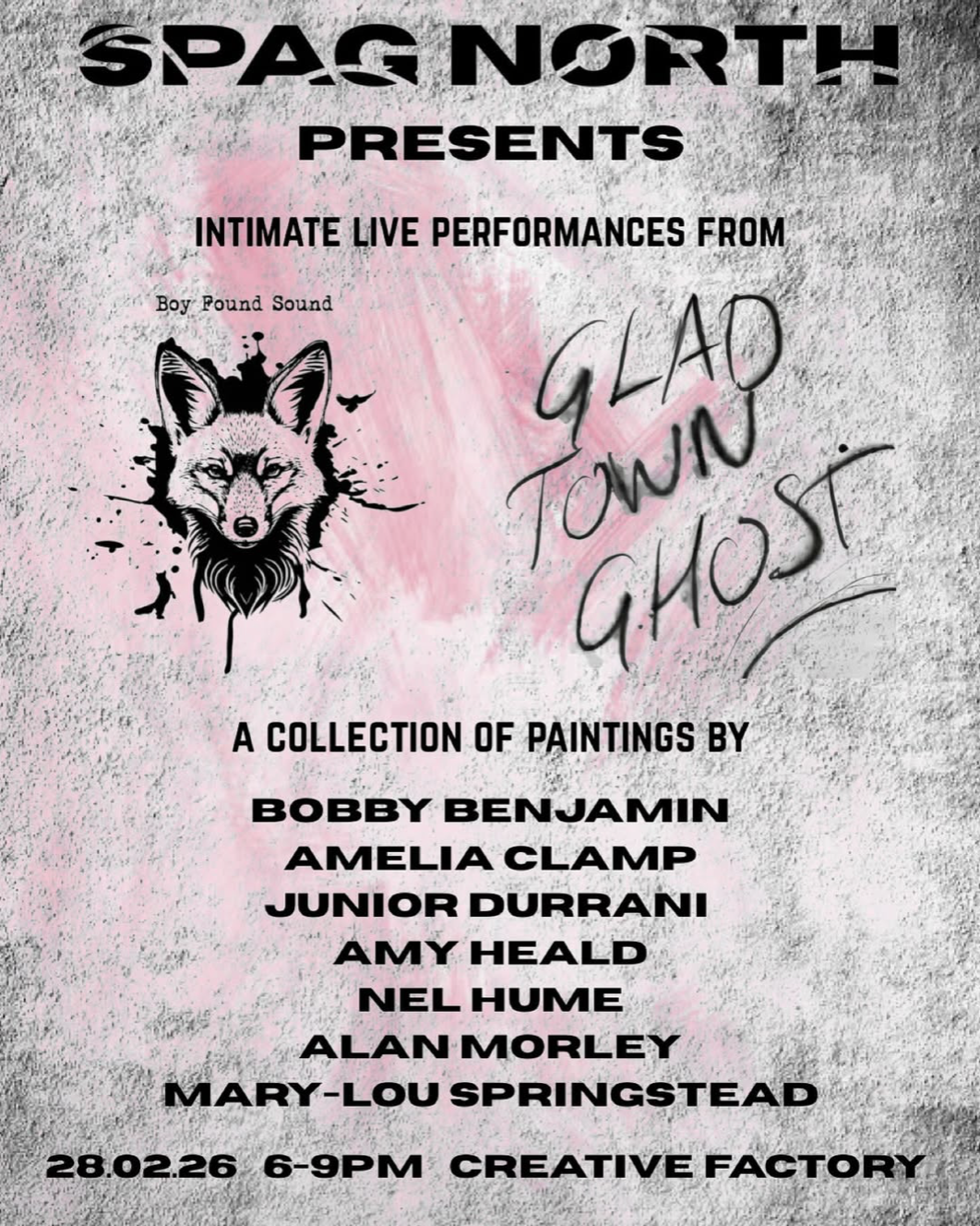 We have intimate, stripped back performances from the fantastic @boyfoundsound and @gladtownghost and a collection of original paintings from @bobbybenjamin@ameliaclampart @juniordurraniart @amyhealdfa_@nelamberhume @alanmorleyartist @robotladyart